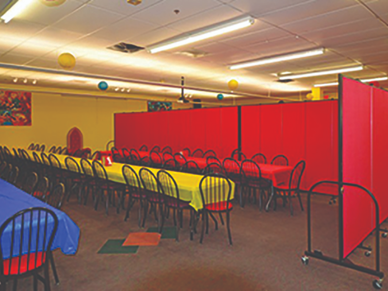 Our unmatched design of a closed cell honeycomb core, two layers of insulation on each side of the portable wall, and fabric covering reduce up to 65% of ambient noise in a room
