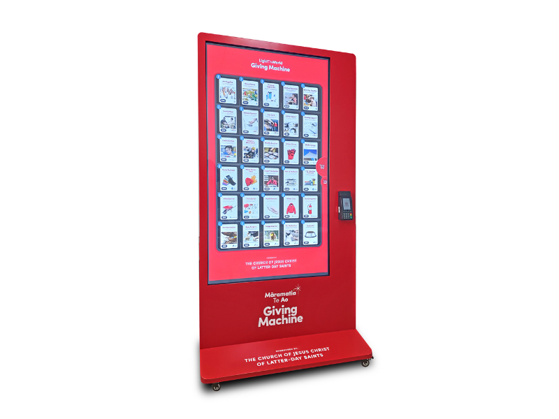 The Interactive Vending Kiosk (IVK) is a cutting-edge, floor-standing, and portable fundraising solution designed to inspire generosity and streamline the process of giving. This innovative kiosk empowers communities and individuals to make a difference by selecting from a variety of impactful options, such as funding meals for families or providing school supplies for children. By simplifying the donation process and offering a tangible way to give, it addresses both donor needs and organisational goals effectively.