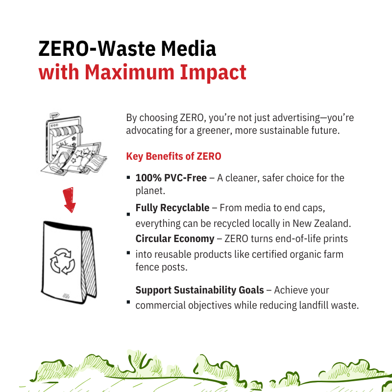 It's fair to say that the global Display Industry doesn't have the best reputation for sustainability. For too many years, we have produced many of our solutions using PVC and other plastics that end up in landfills and take many, many years to break down. But there are alternatives which can be considered. In 2026, Brandstand will focus on educating its clients on the available alternatives. We are now sourcing much of our print media from Zero, an innovative company that's changing the face of print media in New Zealand, one rubbish bin at a time!