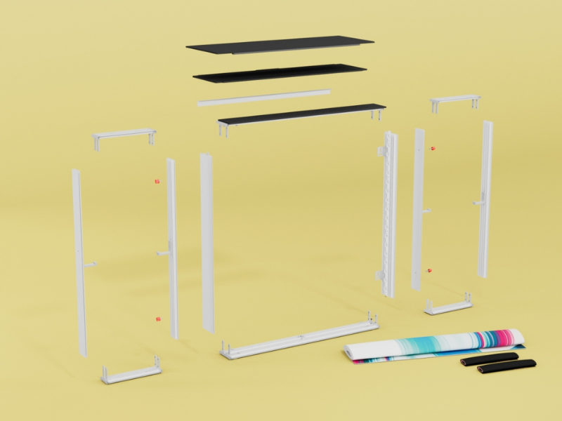 Assembly is very straight forward for this counter and can be set up in a few minutes without the need for tools. Several counters can be set up and connected next to each other in order to create a long continuous counter wall if necessary.