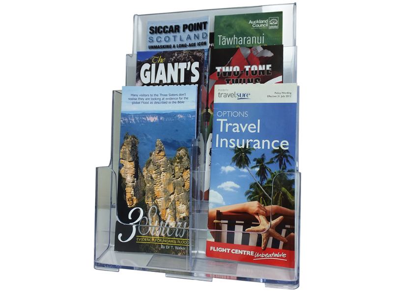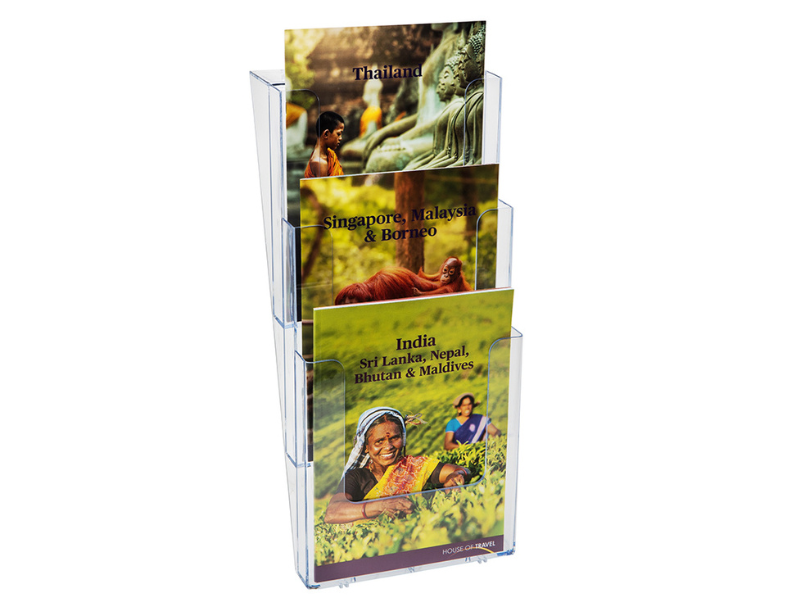 Consists of A5 3-pocket, Free Standing/Wall Mounting brochure holder. 3 Tier x 1 Wide.