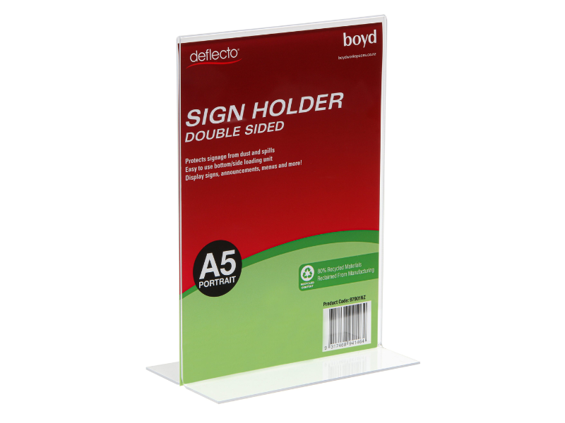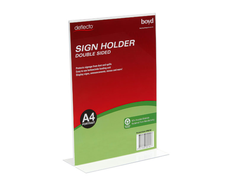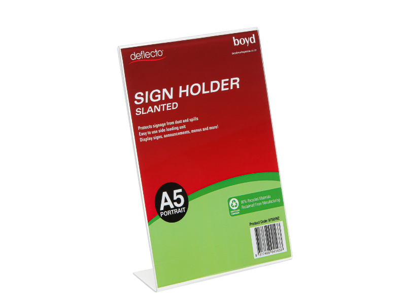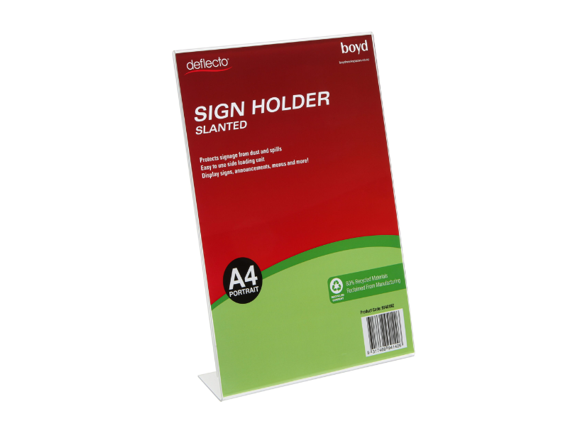 The Recycled Display Range features a selection of display products made from 80% clear recycled materials. This collection includes six high-quality products, offering a variety of brochure holders and sign holders in different sizes. Each product is crafted from at least 80% post-industrial recycled material and is designed to be prominently visible on shelves.