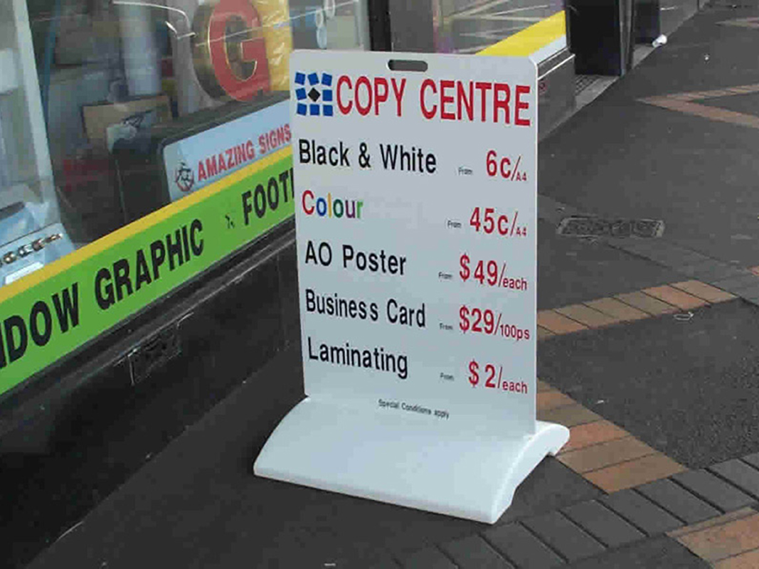 Our footpath signs are a sure way to attract customers. View our range of hi- impact pavement signage & sandwich boards.