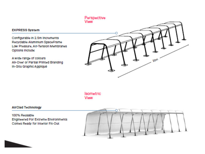 The Fastest pre-built pop-up event product, designed for rapid deployment where volume is required.