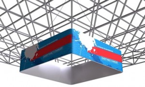 These give your stand extra height because they’re suspended from the ceiling above your stand. This ensures your stand is visible from a long way off in a crowded exhibition hall. Fabric Sky Banners available in various shapes, including square, round, and triangle. Consider a single message or how about different messages on each side?