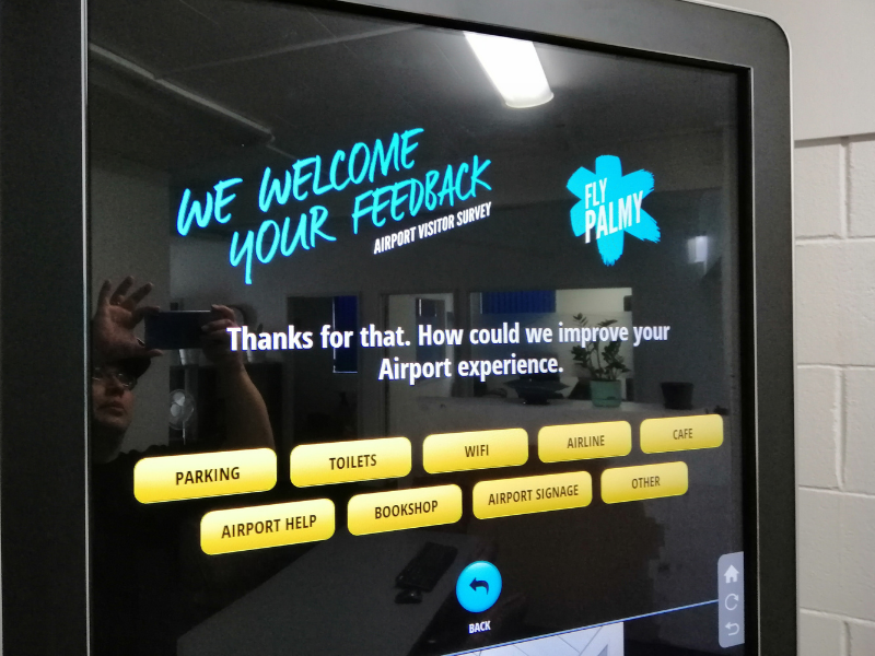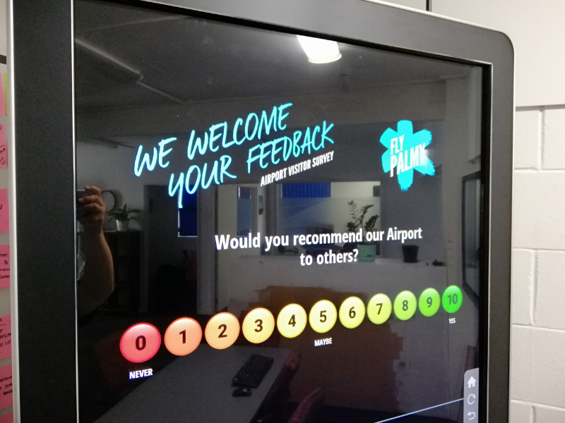 We were approached by Palmerston North Airport to help them deliver better customer feedback. We installed an Interactive Digital Kiosk into the airport and located in a high foot traffic area to ensure impact. Using our bespoke operating system we were able to provide a number of on-screen information segments as well as invite users to leave feedback on their experience within the airport.