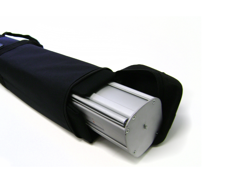The Promo pull up bannerstand weighs less than 5kgs and folds down into a carry bag with shoulder strap for compact storage when not in use