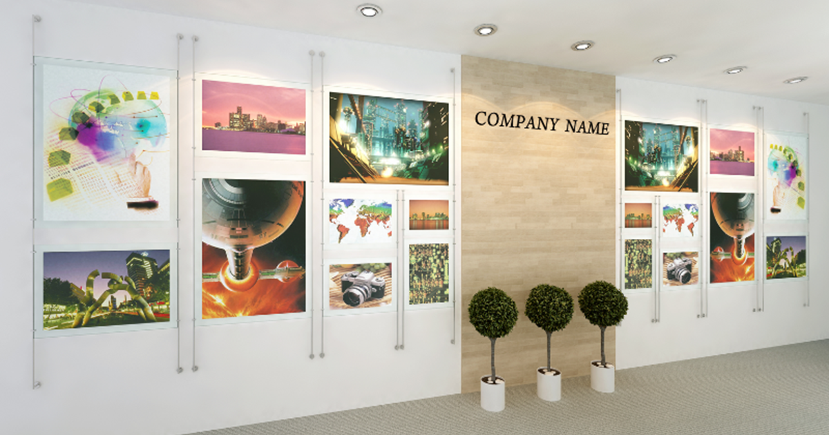 Using a Cable Suspension Signage System means fewer holes in the wall and less permanent construction. The cables only require a single hole at each end to enable you to display a range of materials. Normally an A2 Poster unit would require at least 4 holes, and then additional holes for each unit. With our system, various posters can be hung from the same cables.