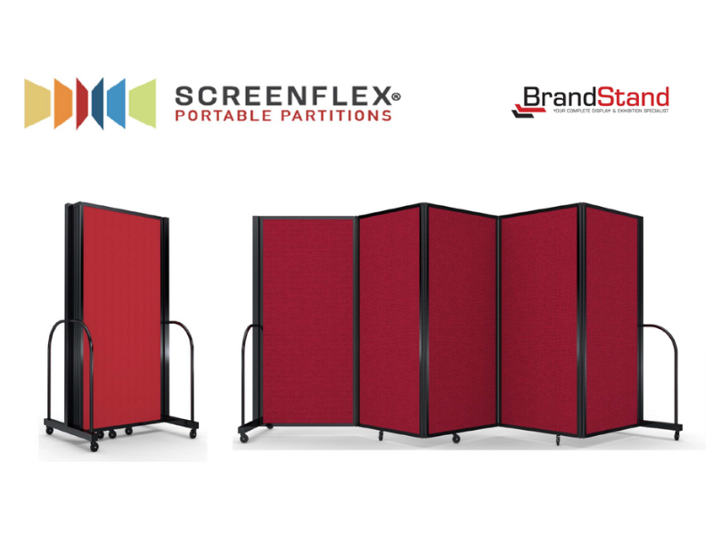 Superbly built, these patented folding office screens/ room dividers by Screenflex are totally free of any exterior connections and glide across the floor to be set up in seconds. Just roll into position, Unlock, Pull Open and Position as desired... Even in a straight line!