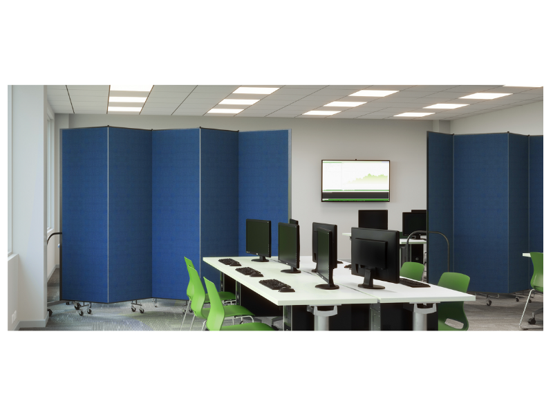 The screen dividers are ideal as a temporary classroom or area within schools, churches and other venues where a quick and easy solution is needed for privacy. You'll be surprised how much noise the specially designed acoustical panels absorb!