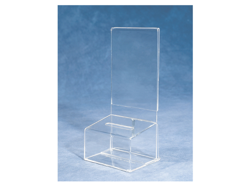 Clear acrylic coin box with sign holder