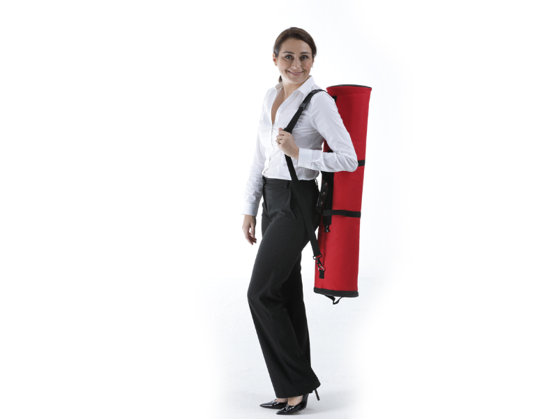 The lightweight aluminium construction means the BrandStand Premier weighs less than 6kgs and folds down into a strong, padded and reinforced carry bag with a shoulder strap making it ideal for compact storage and economical transportation to your next exhibition, conference or event.