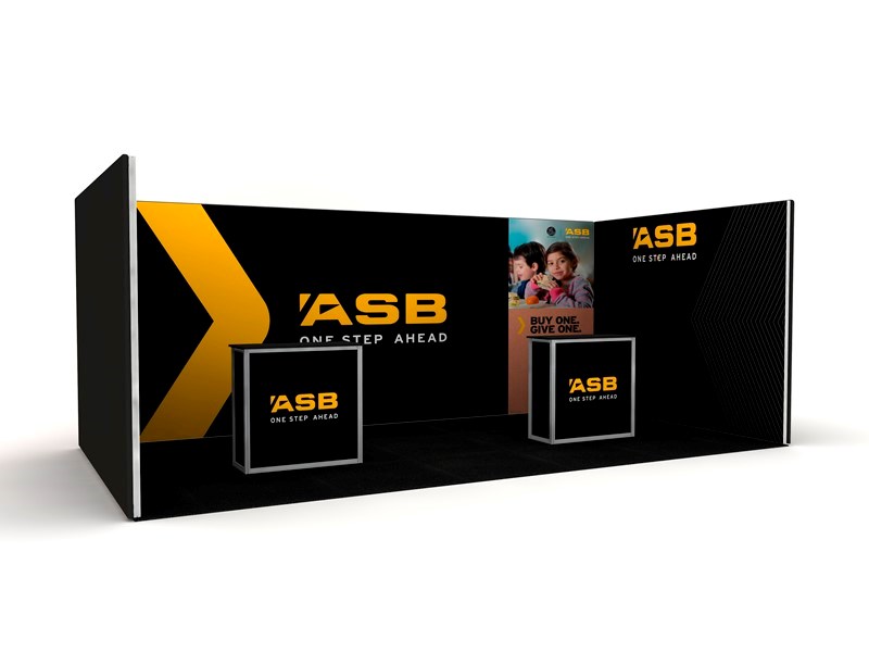 • Dye Sub printed fabric graphics to fit the walls and complete your branded exhibition stand