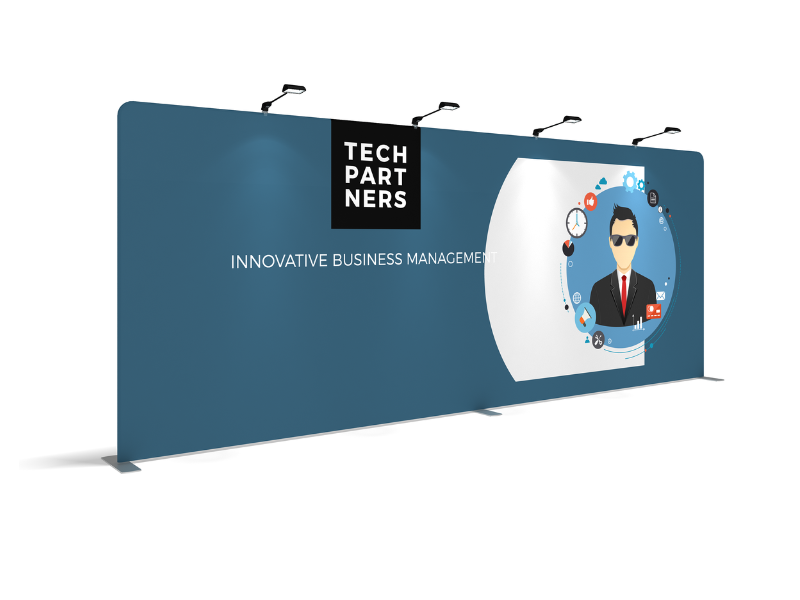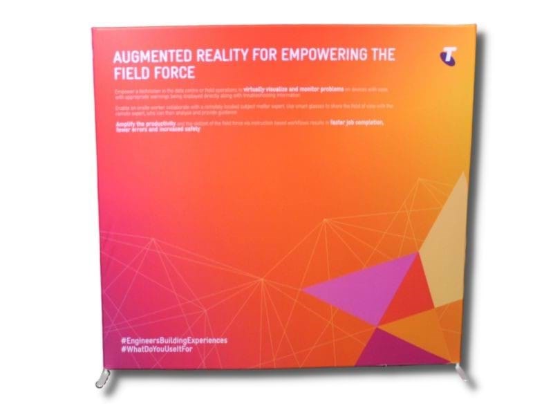Assembly is very straight forward for all the extensive Superwall display range products. Simply click together the bungyed aluminium framing sections, attach the feet (for straight wall only) and the stand is ready for the graphic to be slid over it (just like a big pillowcase!) Once the graphic is zipped along the base it provides an impressive tensioned and seamless look.