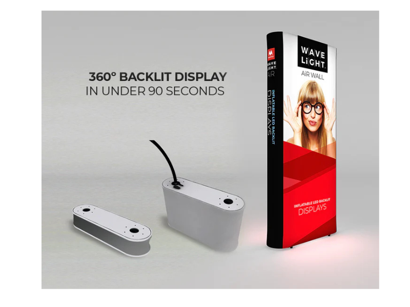 The Super Bright Air Wall comes with a double-sided fabric graphic print with a silicone edge. The material is a dye-sublimation backlit stretch fabric, ensuring full illumination and durability
