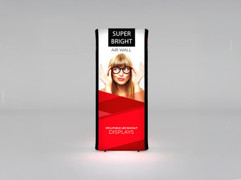 The Super Bright Air Wall comes with a double-sided fabric graphic print with a silicone edge. The material is a dye-sublimation backlit stretch fabric, ensuring full illumination and durability
