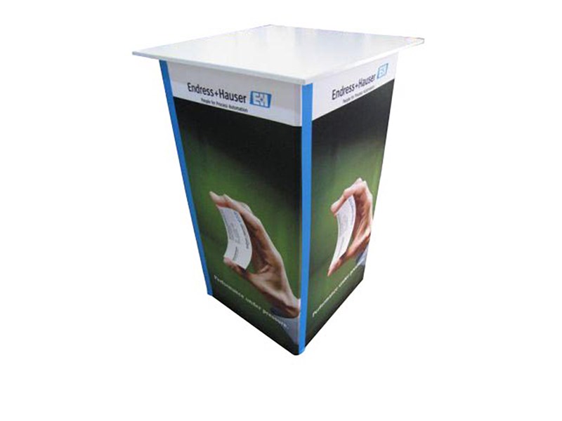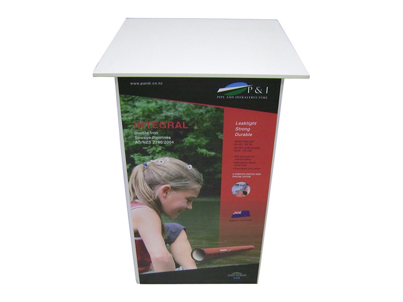 For the biggest impact and versatility, we recommend the interchangeable 4-sided stretch fabric sleeve that simply slips over the base. This is dye-sublimation printed on a washable, heavy-duty lycra fabric.