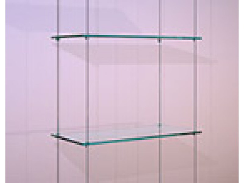 Ceiling to floor shelving kit with 4m long cables complete with top/bottom fixings, 2 x A2 drilled and slotted glass shelves and 8 x CS01 supports in satin chrome.