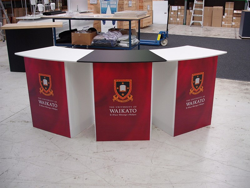 The most popular method of branding is an interchangeable graphic ‘wrap’ that covers the front and 2 sides of your tables base. The wrap is printed full colour and laminated for extra durability. Industrial strength Velcro is attached so it can be interchanged with other wraps as required. Changeover your branding for different campaigns, or simply refresh your table design after a period of time. (there are other branding options also such as a fabric wrap or branded front interchangeable panel. Just talk to us about these options).