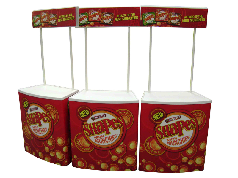 Portable product demonstration tables that satisfy the requirements of the supermarket chains